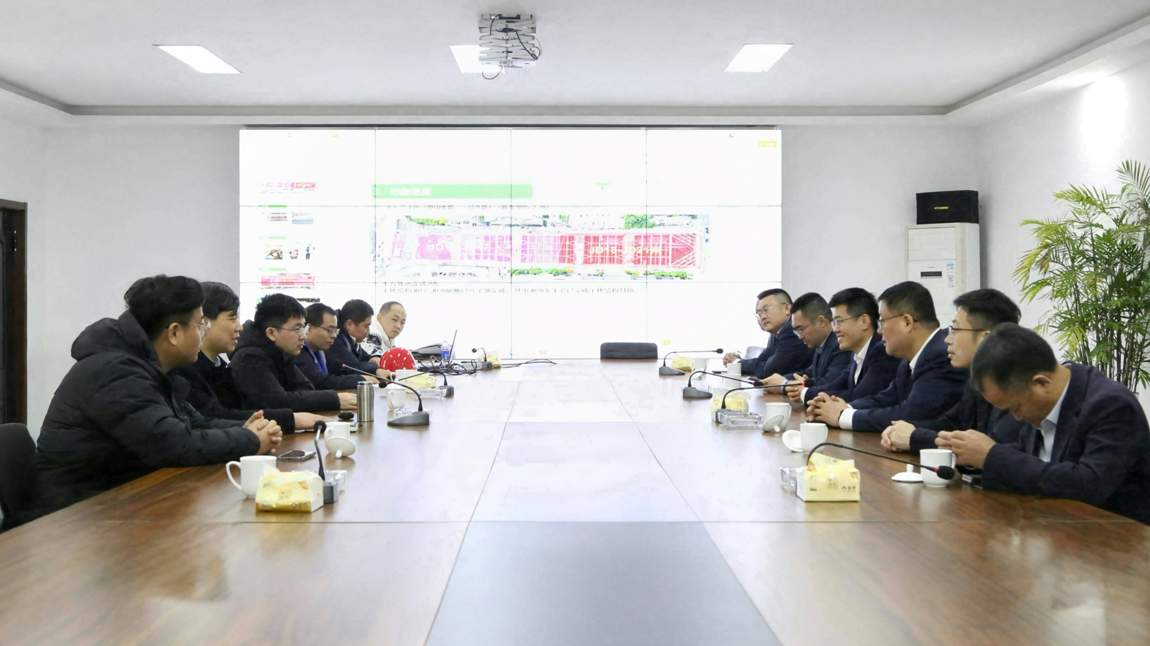 集團高寶儉、戴萍,辦公室、市場發展中心、工程管理中心、第一工程公司、北方區域公司等有關負責人;山東高速德建田崇適、張剛權、朱振雨,市場經營部、三建分公司、四建分公司、裝飾分公司、建科鋼構公司、設計研究院主要負責人參加座談交流。