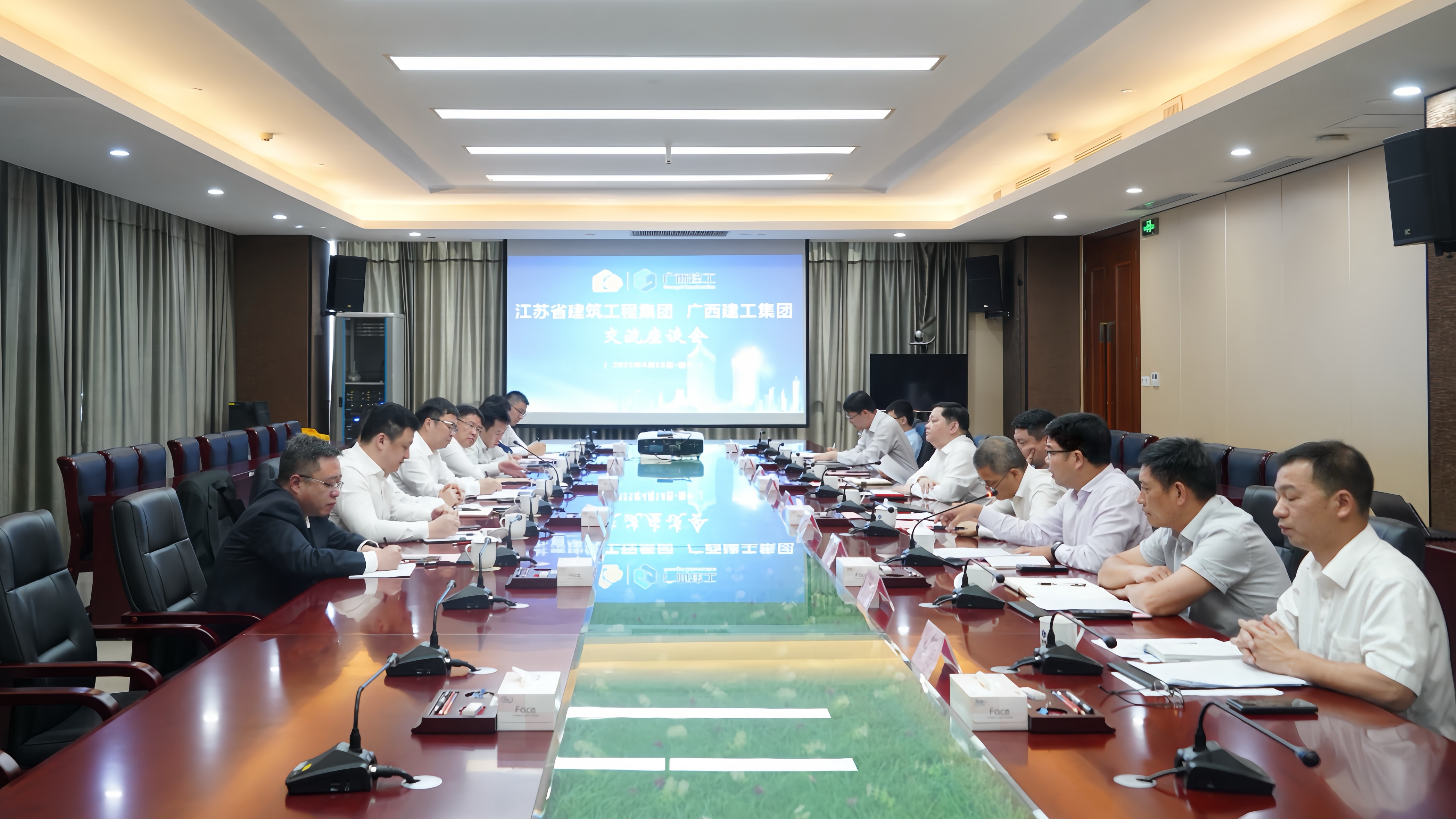 蔣寧對(duì)廣西建工的熱情接待表示感謝,并簡(jiǎn)要介紹江蘇省建近期生產(chǎn)經(jīng)營(yíng)情況。他指出,當(dāng)前建筑市場(chǎng)持續(xù)變化,行業(yè)都面臨著一些共性的挑戰(zhàn),廣西建工圍繞全年目標(biāo),在平臺(tái)建設(shè)、清收清欠、融資信貸、風(fēng)險(xiǎn)化解等方面的優(yōu)秀經(jīng)驗(yàn)以及搶抓政策和市場(chǎng)新機(jī)遇、應(yīng)對(duì)行業(yè)深度調(diào)整的有效策略值得江蘇省建借鑒和學(xué)習(xí)。希望雙方發(fā)揮各自優(yōu)勢(shì),持續(xù)開(kāi)展更深入的交流學(xué)習(xí),加強(qiáng)溝通對(duì)接,加大業(yè)務(wù)合作,實(shí)現(xiàn)經(jīng)驗(yàn)共享、互促提升,攜手共贏發(fā)展。