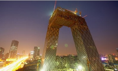 這一壯觀的建筑,以巨大的、超現實的中文書法字符作為靈感來源,在2008年奧運期間完成了主體結構。但現在,它里面還沒有任何東西。在2009年年末,它將成為央視的總部,并且,將向公眾開放。這幢大樓的動力學設計由荷蘭建筑大師雷姆·庫哈斯和德國建筑師Ole Scheeren完成,而Cecil Balmond則擔任設計工程師。這個設計不得不說是個奇跡。