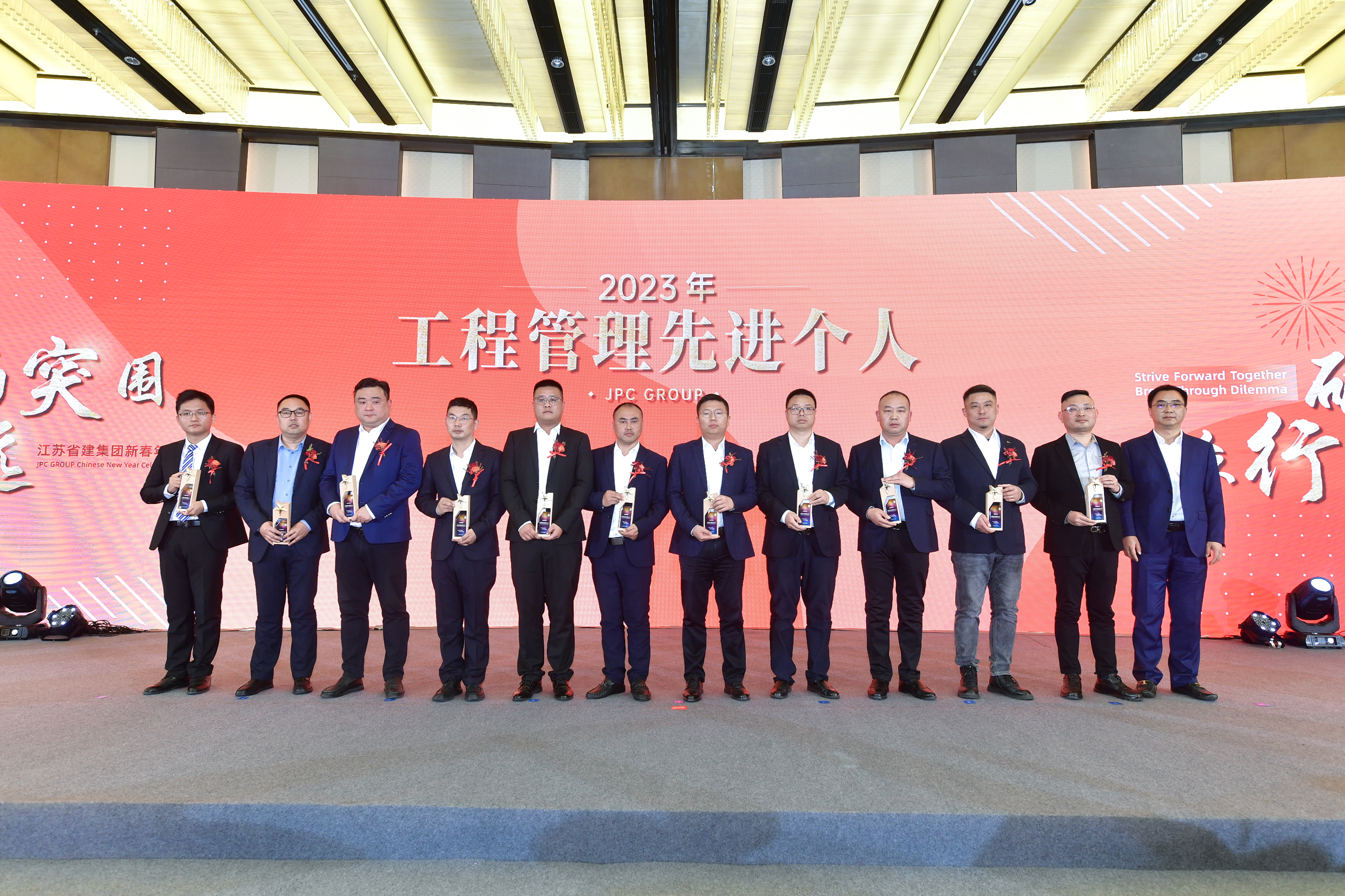 2月21日下午,“破局突圍 眾行致遠(yuǎn)”江蘇省建集團(tuán)新春年會在南京華泰萬麗酒店舉行。江蘇省住房和城鄉(xiāng)建設(shè)廳黨組成員、副廳長李震,綠地集團(tuán)執(zhí)行總裁、綠地大基建集團(tuán)總裁陳軍,省住房和城鄉(xiāng)建設(shè)廳建筑市場監(jiān)管處處長汪志強(qiáng)、工程質(zhì)量安全監(jiān)管處處長蔣惠明、行政審批處處長肖屹、省建設(shè)工程招標(biāo)投標(biāo)辦公室主任顧穎,綠地大基建集團(tuán)運(yùn)營管理中心總經(jīng)理劉青、總經(jīng)理助理鄭景申,集團(tuán)公司董事長陳正華、總裁蔣寧、黨委書記仇天青,與300余名省建人齊聚一堂,分享喜悅,見證榮耀,共啟新年奮進(jìn)之路。