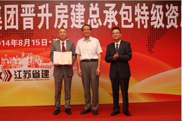 集團公司董事長陳正華發表了熱情洋溢的致辭。他在講話中對為申特工作付出艱辛努力的集團廣大員工和所有關心和支持江蘇省建申特工作的各級領導表示敬意和感謝。陳正華說,獲得房建總承包特級資質是數代省建人夢寐以求的目標,是江蘇省建改制以來最重要的戰略任務之一。七年前我們與特級資質失之交臂,七年來我們對特級資質的夢想和追求從來沒有松懈過。為了實現這一目標,我們成立了以仇天青總裁為組長的特級資質申報領導小組,吃透新標準的精神,制定了詳細的房建特級資質升級的申報方案,從“企業資信能力、專業技術人員、科技進步水平、信息化管理、代表工程業績”等方面,對照標準要求,對集團公司的情況進行全盤梳理,逐一落實。在經過長達七年的申報過程中,集團各單位、各部門通力合作、不懈努力,克服了申報過程中的諸多困難,使江蘇省建集團全面達到了《特級資質新標準》規定的各項指標,順利地通過了資質審查核準過程中的業績核查、資料審查、實地核查等全部環節,集團成為《特級資質新標準》頒布后七年來江蘇省第一家申特成功的企業。