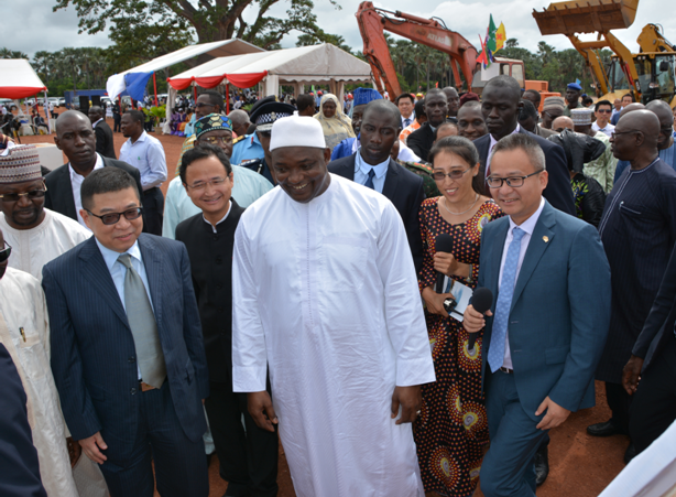 岡比亞總統阿達馬·巴羅、外交部外長達博、工程部部長喬貝,各國駐岡使節和國際組織駐岡代表;中國商務部國際經濟合作事務局黨委書記俞子榮、駐岡大使張吉明、駐岡使館經商處參贊羅文雋,江蘇省建集團黨委書記、總裁仇天青,集團總裁助理張方兵,中國建筑西南設計研究院院務總監張祖強,駐岡中資企業代表以及岡民眾代表500余人參加了奠基儀式。