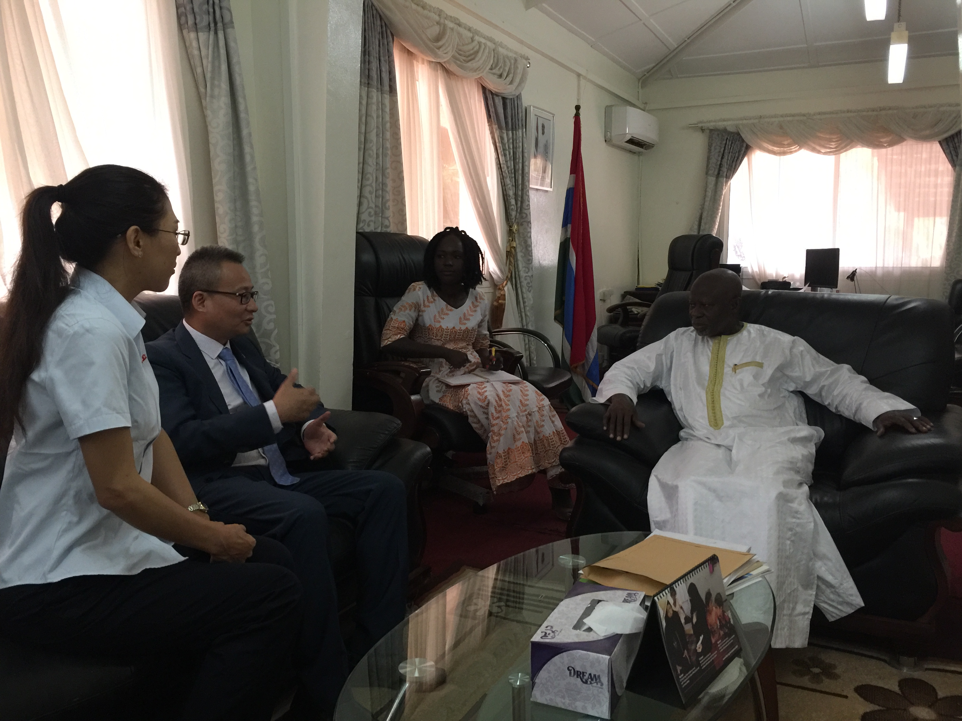 儀式開始前,仇天青總裁還專程前往岡比亞外交部和工程部,分別拜訪了達博外長和喬貝部長。